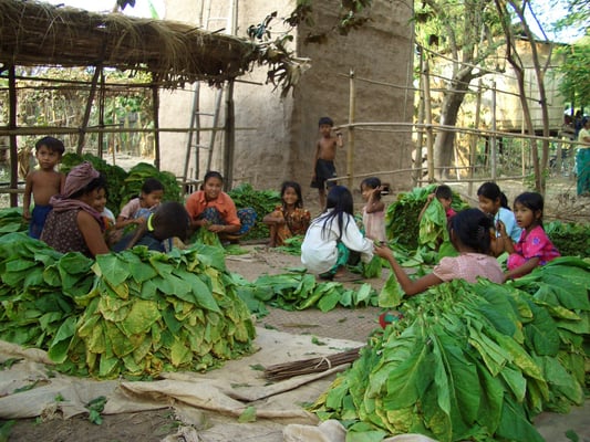 Weiter geht es flussabwärts nach Kampong Cham, der drittgrößten Stadt Kambodschas. Wir mieten Fahrräder und besuchen den auf einem Berg gelegenen Wat Hanchey. Er stammt aus dem 8. Jahrhundert. Die Aussicht von hier oben auf den Mekong ist grandios. Die Fahrt dem Fluss entlang führt uns durch unzählige am Fluss gelegene Dörfer. Die Dorfbewohner winken uns freundlich und die Kinder rufen uns immer wieder "Hello Hello" zu. Wehe, wenn wir nicht antworten, das Schreien wird dann nur noch lauter. Bei Kampong Cham liegt auch die Insel Koh Paen. Sie ist mit einer Bambusbrücke mit dem Festland verbunden. Hier scheint für uns die Uhr stehen geblieben zu sein. Einfache Holzhäuser, Ochsenkarren und viele Fahrräder prägen das Bild. Die Bewohner bepflanzen grosse Felder mit Tabak. Die Blätter werden später getrocknet und zu wohlriechendem Tabak verarbeitet. Die ganze Insel scheint mit dieser Tätigkeit beschäftigt zu sein, immer wieder sind Gruppen von Leuten in den Tabakfeldern oder vor den beheizten Trocknungsanlagen anzutreffen.