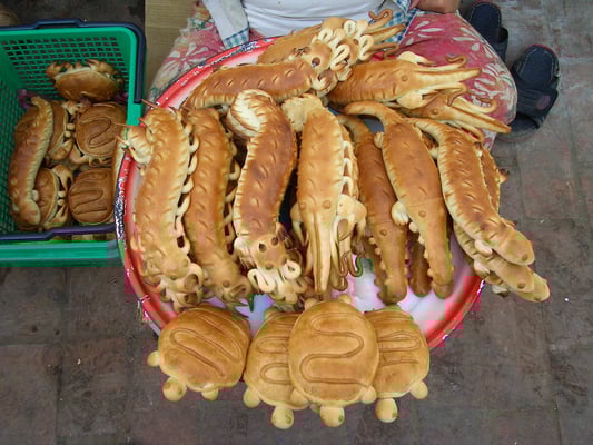 Das erste Frühstück in Laos geniessen wir im speziellen: wir staunen nicht schlecht, als uns ofenfrische, warme Baguettes und schmackhafter Kaffee aufgetischt wird. Seit langem wieder einmal frisches Brot geniessen zu können, tut uns gut. Im allgemeinen können wir uns aber über die kulinarischen Köstlichkeiten, die Asien bietet, ganz und gar nicht beklagen. Was uns Schweizern halt am meisten fehlt ist knuspriges Brot und ein währschaftes Stück Käse.