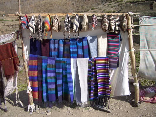 Einen Tag spaeter steigen wir auf ueber 5000 Meter hoch. Wir finden ein Nachtlager in einem sehr kleinen und einfach eingerichteten Teehaus. Die Passhoehe des Thorung La auf 5416 Meter ueber Meer ist nicht mehr weit entfernt. Wir erreichen sie am naechsten Morgen nach eineinhalb Stunden Fussmarsch. Die Aussicht vom mit Gebetsfahnen geschmueckten Plateau nach Westen ist eindruecklich. Die Siedlungen, von gruenen Getreidefeldern umrahmt, erscheinen wie Oasen im wuestenaehnlichen Terrain. Es ist das noerdlichste Gebiet Mustangs, das fuer Touristen zugaenglich ist, ohne dass eine hohe Gebuehr bezahlt werden muss. Am Horizont ist der Gipfel des Dhaulagiri (8167 Meter) auszumachen.