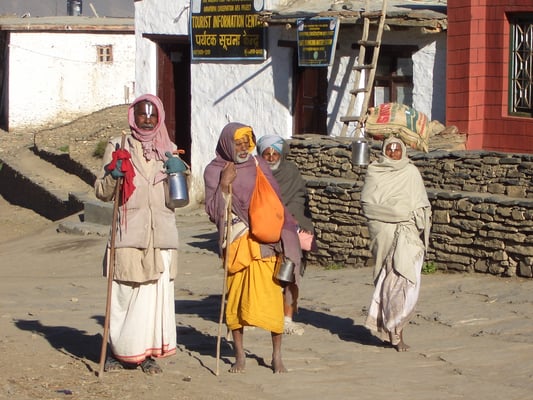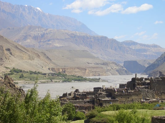 Muktinath ist der erste Ort, den wir nach einem harten Abstieg erreichen. Der dortige Tempel ist Wallfahrtsort sowohl fuer Hindus wie auch fuer Buddhisten. Wir begegnen Pilgern, die hunderte von Kilometern zurueckgelegt haben, um diesen heiligen Ort zu erreichen. Einige von ihnen sind barfuss unterwegs. Der weitere Weg hinunter ins Tal ist landschaftlich sehr reizvoll. Unser Blick schweift nordwaerts Richtung Upper Mustang und Tibet. Mustang - allein der Name hat fuer uns etwas mystisches an sich. Wir verschieben aber einen Besuch vo Lo Manthang auf einen spaeteren Zeitpunkt.