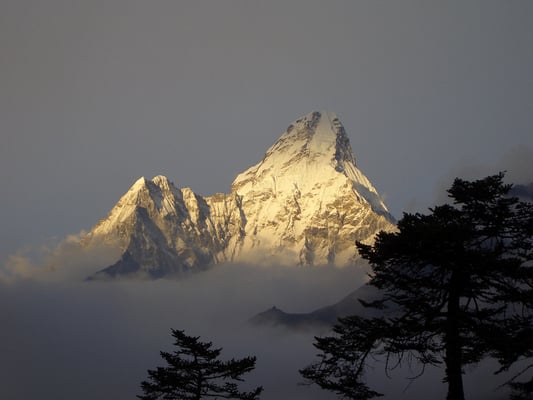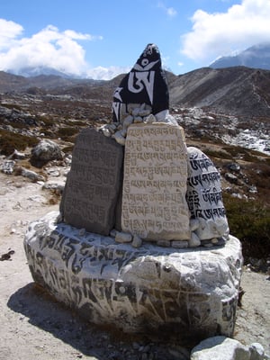 Weil wir uns bereits in Bhutan auf Hoehen von ueber 4000 Meter angepasst haben, koennen wir auf die sonst noetigen Akklimatisierungstage verzichten. Wir kommen so taeglich rasch voran und goennen uns einen ersten Ruhetag erst nach fuenf Tagen in Dingboche auf 4360 Meter ueber Meer. Den Ruhetag nutzen wir fuer einen Ausflug nach Chhukhung. Wir geniessen von dort die Sicht auf die 5814 Meter hohe Pyramide des Aba Dablam und auf die Ostseiten von Lhotse (8516 Meter) und Nuptse (7864 Meter).