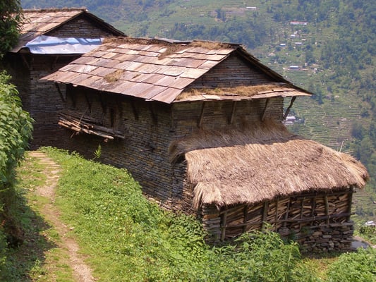 Wir folgen ein paar Tage dem Marsyangi-Fluss. Die Landschaft beginnt zunehmend einem Bergtal in der Schweiz zu gleichen. Statt durch Bambus- wandern wir nun durch Foehrenwaelder. Bereits koennen wir erste Gipfel des Annapurna-Massivs erblicken. Die Siedlungen sind zunehmend tibetisch und buddhistisch gepraegt. Unterwegs marschieren wir vorbei an Mani-Steinmauern. Das sind aufgeschichtete Felstafeln, in die der buddhistische Gebetsspruch "Om mani padme hum" (Juwel im Herzen des Lotus) eingeritzt ist. Inzwischen sind wir sechs Tagesetappen von der in Besi Sahar endenden Autostrasse entfernt. Wir teilen den Weg mit Traegern und Maultierkaravanen, schwer beladen mit Lebensmitteln oder Kerosinkanister, die sie in die abgelegenen Doerfer bringen. Fuer uns ist es eine neue Erfahrung, uns jeden Tag ein Stueck weiter von der westlich gepraegten Zivilisation und Mobilitaet zu verabschieden. Jeder nicht lokal gefertigte Gegenstand und alle nicht hier angepflanzen Nahrungsmittel muessen von weit her hochgetragen werden. Wir setzen uns mit einem schlechten Gewissen auf die Plastikstuehle im Garten unserer Lodge, und stellen uns vor, wie wohl der schwere Kuehlschrank oder das Keramiklavabo hierher gekommen sind.