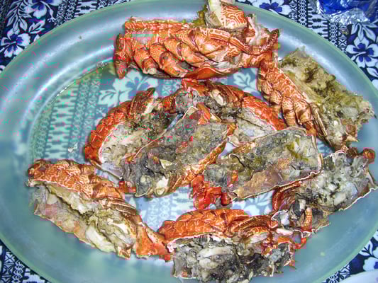 Bereits auf dem Flug von Sydney nach Apia sind uns die schwergewichtigen und fettleibigen Leute aufgefallen. Die Bewohner Samoas sind als übergewichtig bekannt. Nach einem Marktbesuch wissen wir auch, weshalb. Die Garküchen haben mehrheitlich vor Fett triefende Speisen im Angebot, die die Samoaner in riesengrossen Portionen zu sich nehmen. Künstlich gesüsste Getränke werden verschmäht, stattdessen trinkt man das sehr zuckerhaltige Coca-Cola gleich literweise. Ein modernes und sehr beliebtes McDonald's Restaurant in Apia ergänzt das Angebot an Fastfood. Obwohl die gesundheitlichen Probleme wie Diabetes und Herzprobleme stark zunehmen, gehört es hier immer noch zum Schönheitsideal, ein paar Pfunde zuviel herumzutragen. Traditionelles Essen wird meist nur noch Sonntags oder zu besonderen Anlässen wie Hochzeiten oder Geburtstage aufgetischt. Dieses wird in einem Erdofen, dem Umu, zubereitet. An jedem Sonntagmorgen steigt aus den Dörfern der Rauch aus unzähligen Umus auf. Typische lokale Speisen sind die Wurzelgemüse Taro, Cassava oder Yam, frischer Fisch, Spanferkel, Poulet, Palusami (Kokosnusscreme in Taroblättern), Oka (marinierter, roher Fisch), Tintenfische und Lobster. Ein Frühstück besteht aus Reisbreis an Kakao, dazu serviert man frische, sehr süsse und fruchtige Papayas. Es erstaunt nicht, dass die Kokosnuss in der lokalen Küche einen hohen Stellenwert einnimmt. Die Kokosnusspalme ist die am weitesten verbreitete Pflanze auf den Inseln im Südpazifik. Die Kokosnussprodukte sind sehr vielfältig. Der Saft ist erfrischend und so gesund, dass er auch zu medizinischen Zwecken verwendet wird. Das weisse Fruchtfleisch kann zur Gewinnung von Kokosnussmilch oder -öl verwendet werden oder ist geraspelt Bestandteil vieler Kochrezepte. Die Schalen der Kokosnüsse gebraucht man als Trinkgefässe, nutzt sie als Brennstoff oder man macht daraus Schmuckstücke. Aus den Fasern der Nussschale werden Seile hergestellt. Die Blätter der Palme werden zu Körben und Matten geflochten. Der Stamm wird zu Holzblättern oder Brennholz verarbeitet. Eine einzelne Palme hat eine Lebensdauer von über 70 Jahren und liefert über 60 Kokosnüsse pro Jahr.