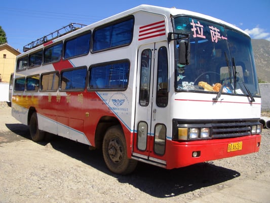 Das letzte grosse Ziel unserer langen Reise ist Tibet. Wir stellen fest, dass sich die Einreisebestimmungen der chinesischen Zollbehoerden fuer Touristen geaendert haben. Unser bereits in Bangladesch besorgtes Einzelvisa fuer China stellt sich als nutzlos heraus. Ein Grenzuebertritt ist zur Zeit nur mit einem Gruppenvisum im Rahmen einer gefuehrten Tour moeglich. Wir nehmen die rund 1000 Kilometer von Kathmandu nach Lhasa in einem klapprigen und baufaelligen Jeep, Baujahr 1985, in Angriff. Es wird fuer uns eine der anstrengendsten Ueberlandreisen werden. Der die beiden Hauptstaedte verbindende „Friendship Highway“ ist nur auf wenigen Abschnitten asphaltiert. Die unzaehligen Baustellen und der schlechte Zustand der Strasse verhindern ein zuegigies Vorankommen. Am zweiten Tag benoetigen wir fuer die 300 Kilometer lange Etappe ueber zehn Stunden. Durch die nicht dicht abschliessenden Tueren und Fenster dringt der Strassenstaub ins Innere des Jeeps. Als wir aussteigen, sind wir mit einer dicken Staubschicht bedeckt. Wir klopfen hustend den Staub aus unseren Kleidern und von unseren Rucksaecken. Fuer all diese Unannehmlichkeiten werden wir mit spektakulaeren Landschaften des tibetischen Hochlands entschaedigt. Mehrmals ueberqueren wir ueber 5000 Meter hohe Paesse. Die Sicht auf die gewaltigen Berggipfel des Himalayas ist einmal mehr eindruecklich. In Shigatse besichtigen wir die grosse Anlage des Tashilumpo Klosters. Der dort residierende Panchen Lama ist der zweithoechste Geistliche hinter dem im indischen Exil weilenden Dalai Lama. Wir schliessen uns dem Strom der Pilger an und umrunden das Kloster auf der Kora, dem an unzaehligen Gebetsmuehlen entlangfuehrenden Pilgerweg. Tashilumpo beeindruckt durch seine Groesse und den engen verwinkelten Gassen zwischen den Kapellen, Grabstaetten und Unterkuenften der Moenche.