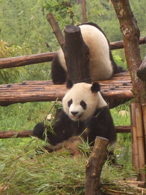 In der Panda-Zucht- und Pflegestation von Chengdu leben etwa 20 der vom Aussterben bedrohten Baeren. Die Tiere leben hier in grossen, naturgetreuen Gehegen, wie man sie sonst in asiatischen Zoos nicht antrifft. Die Zuchtstation ist aeusserst erfolgreich: Bei unserem Besuch konnten wir viele kuschelige Jungtiere beim uebermuetigen Spielen beobachten. Das Pflegeteam betreut hier auch eine stattliche Kolonnie von Red Pandas. Diese kleineren, einem Fuchs aehnlichen Tiere, haben ihren Lebensraum in der ganzen oestlichen Himalayaregion.