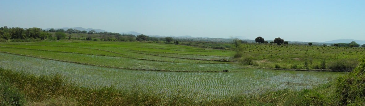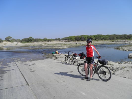 Tag 16, 94 km, 1372 Hm, sonniges und heisses Wetter, erste Baobab-Bäume, saftig grüne Reisfelder in Macara, Highlight: Lunchstop am Flussufer