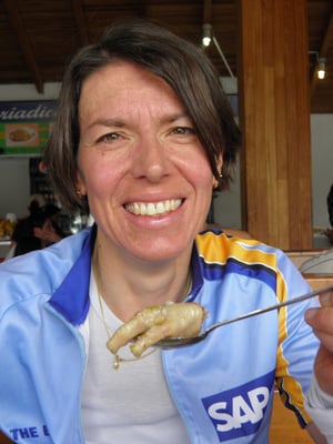 Am letzten sind wir zum Äquator gefahren, dem offiziellen Startort der Tour. Die Etappe war kurz, lediglich 54 km und 639 Höhenmeter. Am Samstag ging’s dann richtig los, raus aus Quito nach Latacunga. Mehrheitlich sind wir der Panamerica entlang gefahren, relativ viel Verkehr, landschaftlich ohne grosse Highlights, total 108 km und 1291 Höhenmeter. Und ich habe mich bereits das erste Mal verfahren, anscheinend waren die 108 km zu wenig. Glücklicherweise habe ich den Weg zurück gefunden. Sonntags standen 97 km und 1741 Höhenmeter auf dem Programm, erstmals ging’s über 3000 m Höhe. Der Verkehr hat nachgelassen, die Landschaften haben sich verändert, wir sind langsam ins Bergland hinein gefahren. Und wieder habe ich mich verfahren... zum Glück nicht alleine, zu zweit haben wir uns mit unseren dürftigen Spanischkenntnissen durchgefragt und schlussendlich sind wir wieder auf der Panamericana und auf dem richtigen Weg gelandet. Da wir den Lunchstop verpasst haben, haben wir in einem lokalen Restaurant eine feine Hühnersuppe gegessen - ich bekam als Supplement "Hühnerfüsse". Der Montag war easy: Nur 52 km und 788 Höhenmeter. Das Highlight war der Lunchstop: Bei schönstem Wetter genossen wir eine wunderbare Aussicht auf die Anden, traumhaft.
