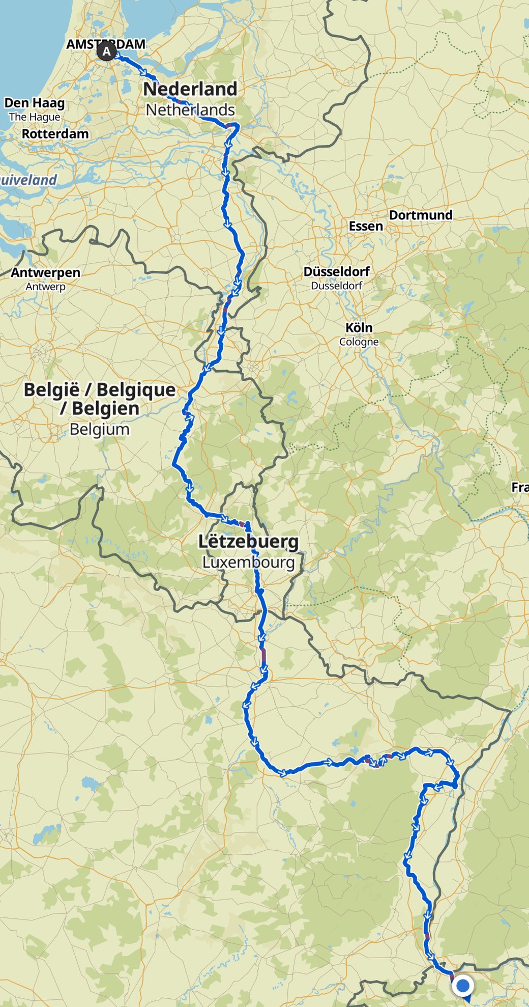 Total 1’012 km und 5’300 HM - das war unser Abenteuer! Von Amsterdam bis nach Sissach - in 10 Tagen auf dem Velo. Unterbrochen von einem Ruhetag in Luxembourg. Wir haben bewusst eine Route abseits der bekannten Radwege gesucht - und gefunden haben wir tolle Wege entlang von vielen Kanälen, durch verschlafene Bauerndörfer und schön herausgeputzte Städtchen. In den Ardennen kamen dann auch die Steigungen!